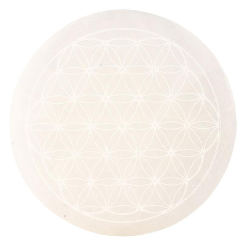 The Selenite Crystal Charging Plate with engraved Flower of Life, and shimmery, pearl-like luster, has deep healing and cleansing characteristics. It has the ability to shield a person or space from negative energies, and restore mental clarity with smooth flow of positive energies. The powerful vibration of Selenite activates all Chakras, especially the Crown Chakra. The plate’s properties coupled with the aligned Chakras dispense calmness and serenity making it ideal for meditation, healing practices and spiritual growth.