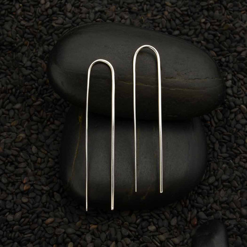 These sterling silver long arch earrings are perfect for the modern minimalist. They're light, airy, and ready to wear. Perfect for everyday looks. The front of the earring is slightly flattened.