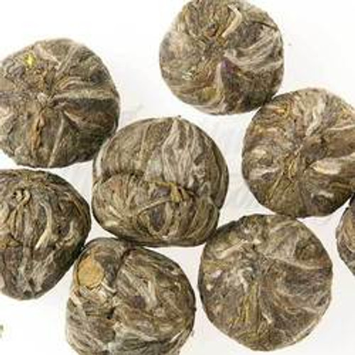 To truly enjoy all these special flowering teas have to offer, steep the ball in a glass teapot. This allows a full view of the bouquet bursting forth from the tea leaves encasing them. For safety, do not use a large wine glass, since this type of glass is not tempered and can shatter if hot water is poured into it. Most tea balls make 2-3 cups of tea. To brew, simple fill a teapot with 3 cups of just under boiling water. You know it is ready if tiny bubbles are just starting to break the surface of the water. Drop the tea ball into the teapot. If water is poured over the tea ball, it may come apart some from the force of the water. The tea usually needs to steep about 10 minutes or until the ball has fully opened. This is usually not the way to brew tea, since water that is too hot or tea steeped longer than 3-5 minutes turns bitter. The process of making the artisan tea balls allows for the non traditional brewing of the tea. Steeping the tea balls with extra hot water and for a longer period of time does not affect them since they usually have less pronounced flavor with a floral or vegetal taste. Flowering teas can also be brewed 2 or 3 times. Simply add more hot water to the pot and steep again.