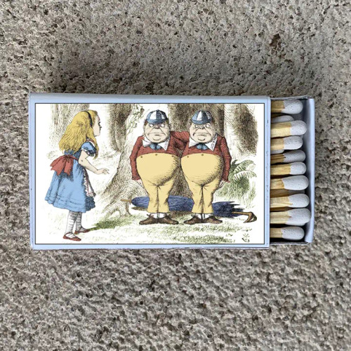 Spice up your coffee table and light your candles and incense with these stylish decorative matches. This unique box of matches features the illustration by John Tenniel of Alice and Tweedle Dee/Dum on both sides.