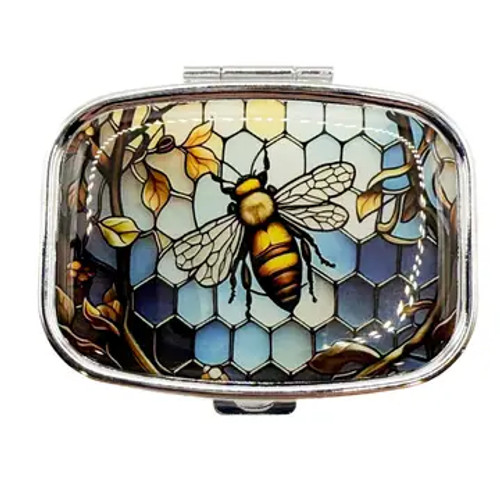 Beautiful Pill Boxes with 2 separate storage sections inside. There is a mirror on the inside of the lid. The boxes are made out of metal with a laminated image on top. The images are both colorful and beautifully done.