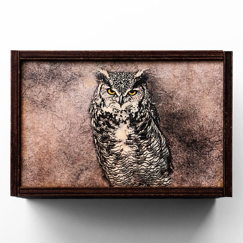 Features a slide top opening. Great for your tarot cards, crystals & gems, jewelry, or medication. A perfect container for your favorite tarot card deck, wrapped in your favorite silk scarf with your favorite crystal. All the good vibes are together and now you can have a beautiful box to match. Featuring a full color imprint, this box is an individual laser-cut slide top and espresso stained baltic birch box that is great to hold anything you treasure or just want to stash. Besides being a great holder of your favorite things, this box also makes a nice decorative piece.